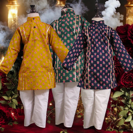 LUXE Cotton Kids Kurta with Pyjamas Pants for Baby Boys and Kids Jippa Conceptual Wear Rajasthani Prints Handmade