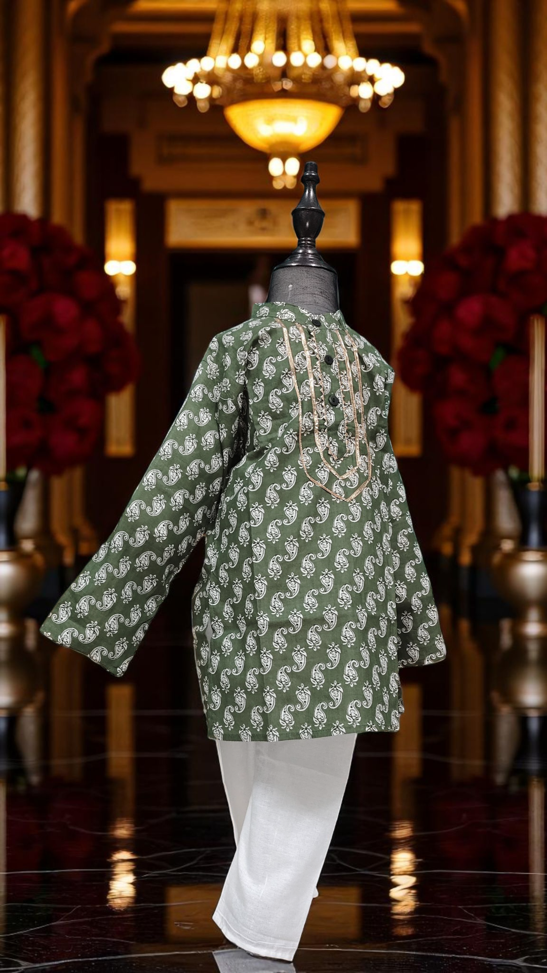 Soft, lightweight, and beautifully tailored, this kurta set promises style and comfort for your child, with sizes ranging from 18 to 32 to fit toddlers and young children alike.