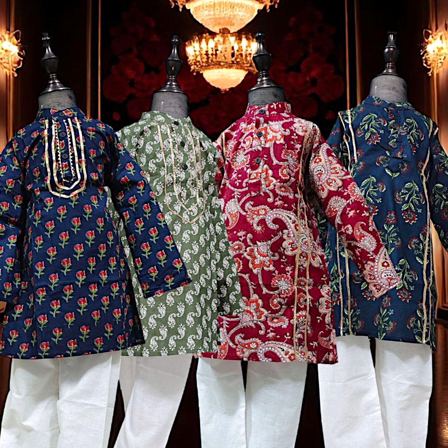 Deluxe Kids Kurta with White Pyjama Set — Premium Quality Cambric Cotton, Sizes 18-32, For Baby Boys and Kids Jippa Concept
