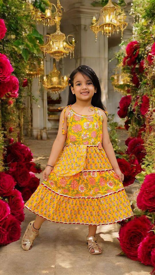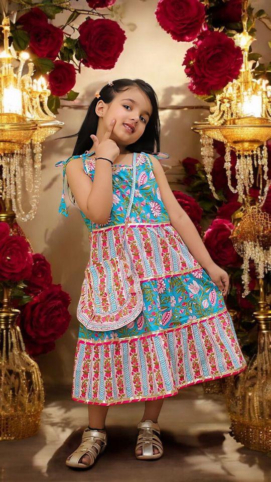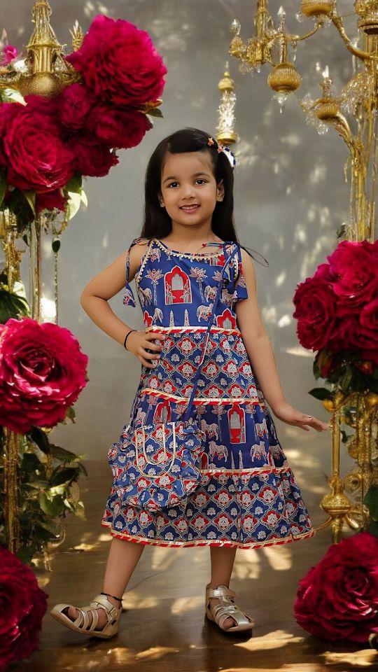 Introducing the Maya Series – the UNIQUE fusion of tradition and style! This stunning Rajasthani handblock cotton dress is awesome for your little one to shine. The dress features a sleeveless kurti with adjustable strings, giving your child the perfect fit for ultimate comfort and freedom. Made from soft, breathable cotton, it's designed to keep your child cool and comfy in any setting.