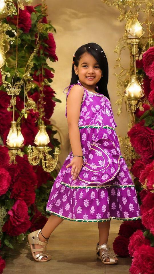 Maya Series – Exclusive Kids Dress with NEW Matching Frilled Sling Bag | Rajasthani Handblock Cotton